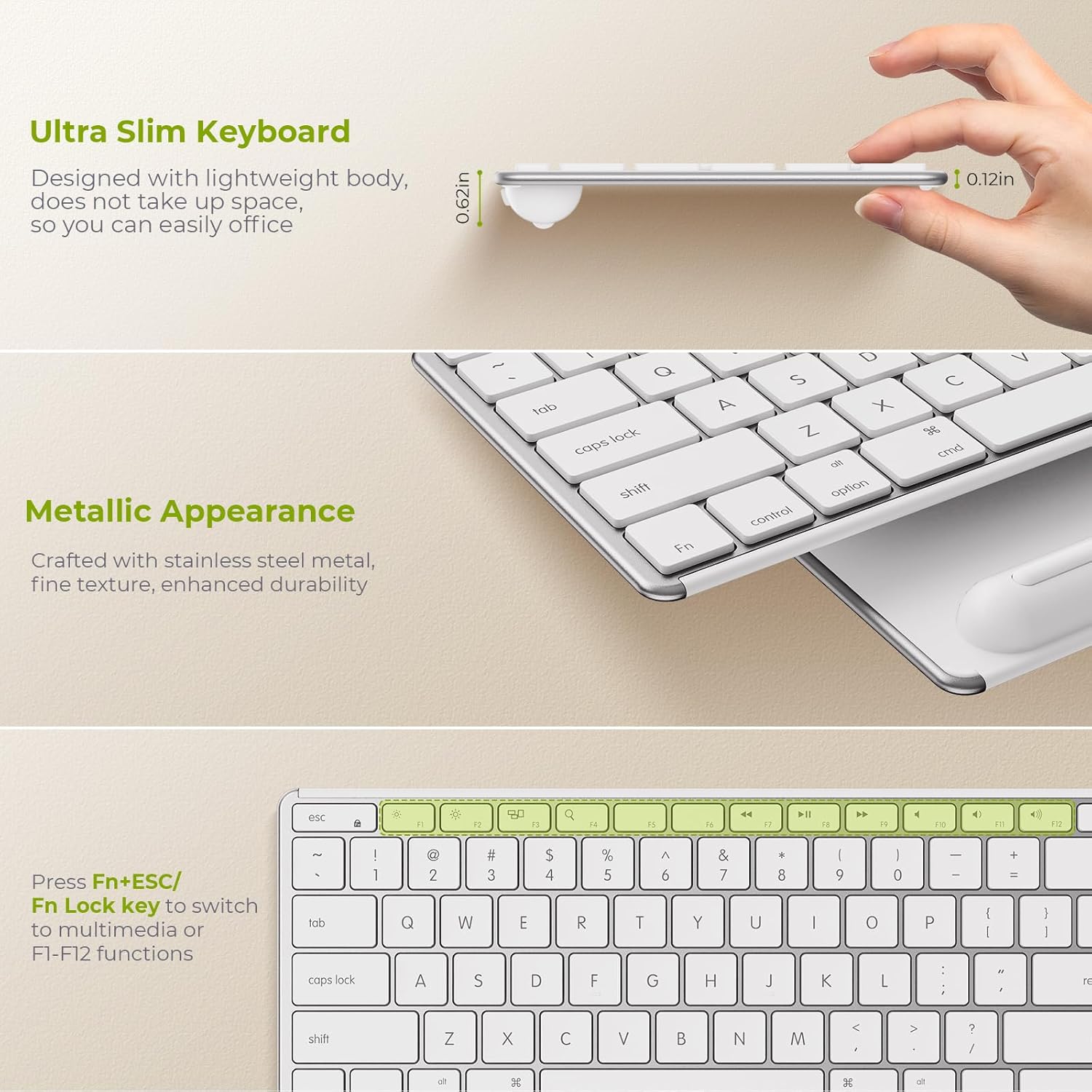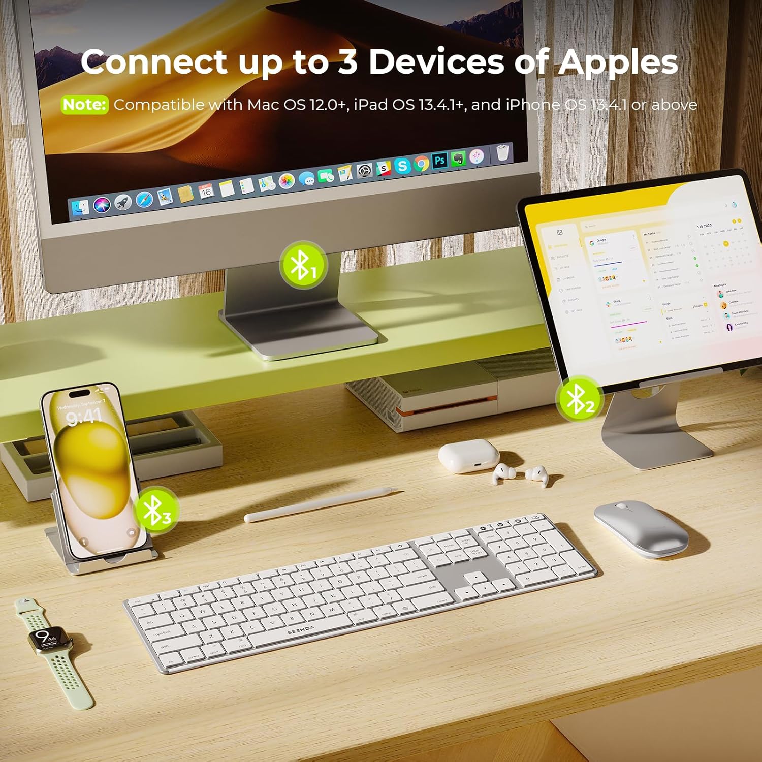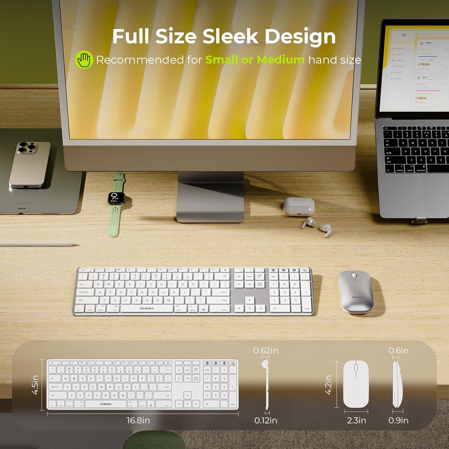 Seenda COS500 is a slim, rechargeable keyboard and mouse set built for Apple users. With quiet keys, a full-size Mac layout, and simple Bluetooth switching across devices, it supports a smoother everyday workflow.